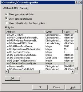A outras formas de permitir um usuário não administrador adicionar máquinas ao domínio, uma das formar é dar a permissão create computer objects e delete computer objects, isso deve ser feito no container computers, é necessário que as opções avançadas(View-Advanced Features)estejam habilitadas, senão não será possível verificar as propriedades do container computers, após selecionar as propriedades ir na aba security e selecionar advanced, e dar as respectivas permissões conforme print abaixo: