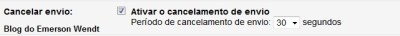 Infelizmente, isso só funciona no e-mail baseado na web e não em clientes de e-mail com SMTP do Gmail. Outra coisa: se você fechar o navegador enquanto a mensagem ainda está na fila o e-mail será enviado de imediato e não há maneira de desfazê-lo mesmo se você conseguir o login novamente para o Gmail dentro de 30 segundos.